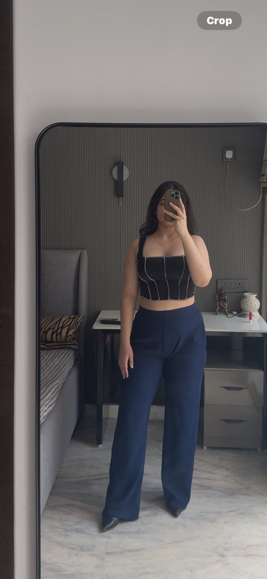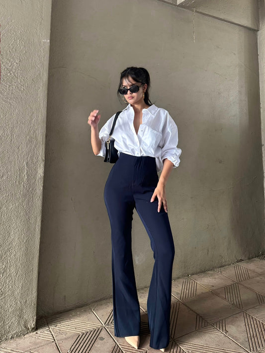 Sold outNavy Blue Side Hook Trousers