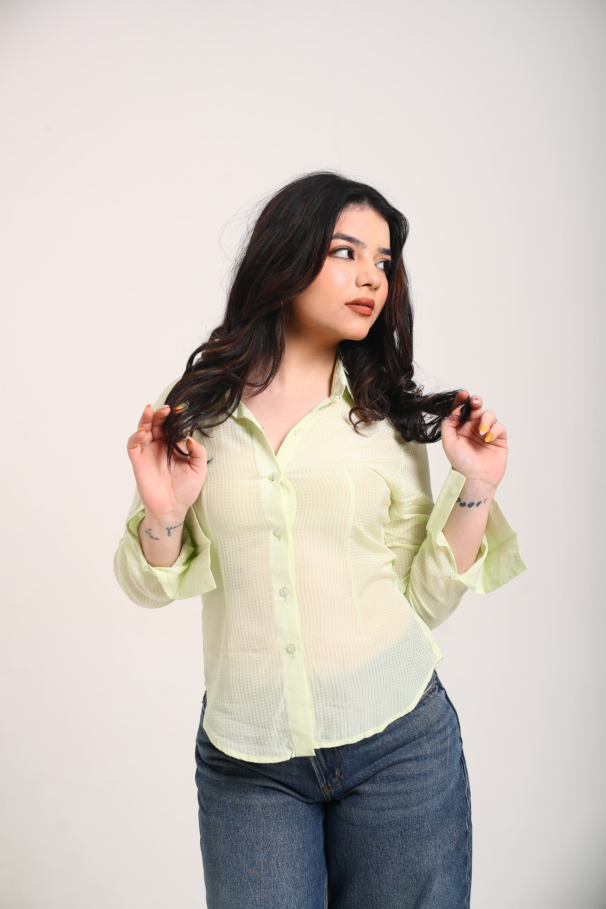 Sheer Lime fitted shirt (with drawstrings)